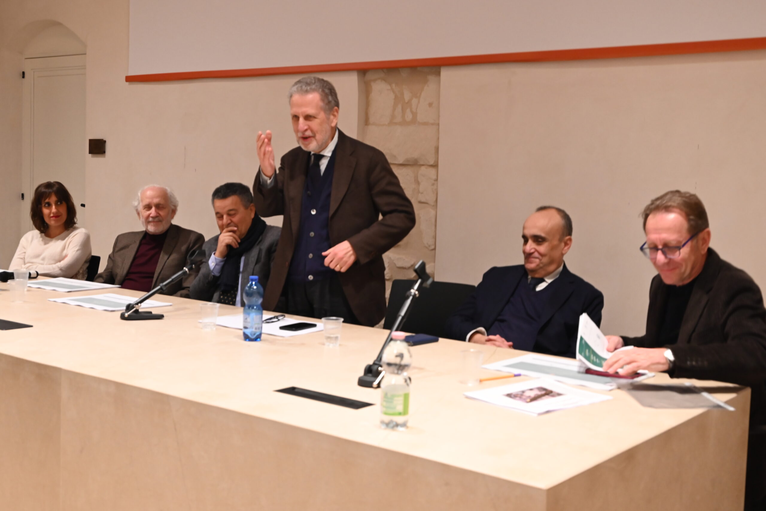 Qui il Sovrintendente Pittèri ha rimarcato l’importanza della originalità e della univocità della proposta culturale, che deve essere autentica, inconfondibile, unica, riconoscibile. Graziana Papale, di Sikarte ha sottolineato l’importanza di fare rete fra le mostre d’arte che il territorio offre, creando sistema, facendo squadra, giocando di rimbalzo fra un’esperienza e l’altra. Il maestro Emilio Isgrò ha concluso riproponendo la sua poetica delle formiche, che in maniera alacre, silenziosa, operosa, costruiscono la loro opera, che nel nostro caso è la cultura, senza indugiare nel sicilianismo, nel gattopardismo, nella retorica dei Pupi siciliani e dei vecchi retaggi che restituiscono un’immagine oleografica della Sicilia.